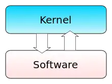Graphic of a monolithic kernel running kernel space entirely in supervisor mode