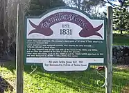 The centerpiece of this small town is Tanilba House, on Caswell Crescent, which is listed on the New South Wales State Heritage Register along with The Temple of the Stork nearby. It is one of Australia's oldest buildings[10] and the oldest in Port Stephens. In 1831 Lieut William Caswell, Royal Navy, received a land grant of 20.2 hectares (50 acres), along with an assignment of convicts who cleared the land and built Tanilba House from locally quarried quartz porphry stone and lime mortar made on the property from oyster shells. A small gaol was also built on the southern side of the house.[11] Ten acres (4 hectares) on the eastern side of the hill was used as a vineyard soon after the house was built. An olive tree planted in the vineyard survives to this day and is heritage listed. A bunya pine, the wisteria covered pergola and two Port Jackson figs are also specifically listed.