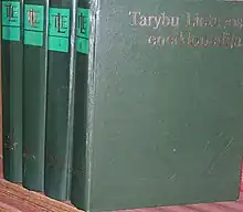 Tarybų Lietuvos enciklopedija or TLE (translation: Encyclopedia of Soviet Lithuania) was an encyclopedia of the Lithuanian SSR, covering topics such as archaeology, history, nature, science, cultural heritage, cities, districts, biographies of famous people and politics, but only as they relate to Lithuania. It was published in four volumes between 1985 and 1988 in Vilnius.[1] It was derived from the 12-volume Lietuviškoji tarybinė enciklopedija but TLE did not cover general areas such as technology, biology, pharmacology, chemistry, medicine, mathematics and others.