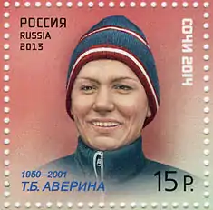 Tatyana Averina on a 2013 Russian stamp from the series "Sports Legends"