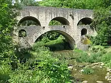 The double bridge with its two rows of arches, one on top of the other, was probably built around 1330. It lies at the foot of the southwestern valley side below Rothenburg ob der Tauber and was part of a trade route from Augsburg to Würzburg. In terms of building activity, it is known that it was renovated in 1791, after the four upper arches had collapsed the year before. In 1925, the eastern approach to the bridge was widened and, twenty years later. In 1945, the structure was blown up by German troops. Rebuilding commenced in 1955, and took a good year. The rebuilt bridge was opened on 10 November 1956.