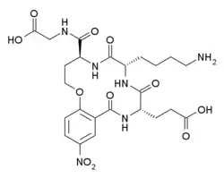 • 3-[(5S,8S,11S)-8-(4-aminobutyl)-5-(carboxymethylcarbamoyl)-16-nitro-7,10,13-trioxo-2-oxa-6,9,12-triazabicyclo[12.4.0]octadeca-1(14),15,17-trien-11-yl]propanoic acid