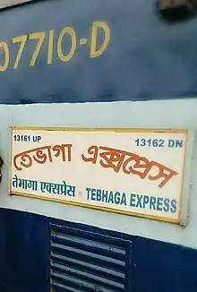 ![]() Tebhaga Express train board | |
