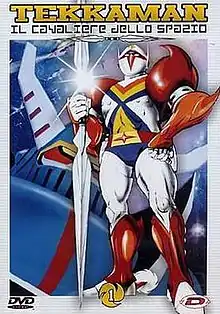 Tekkaman: The Space Knight (宇宙の騎士テッカマン, Uchū no Kishi Tekkaman) is a Japanese anime produced by Tatsunoko Productions in 1975.[2] A short-lived English adaptation aired in the U.S. in 1984. The first 13 episodes streamed in Japanese with English subtitles on Anime Sols as of spring 2013 exclusively in North America, but the website is now defunct. All 26 episodes were streaming on Viewster in several countries until the website went defunct in 2019. In the 1990s, it was followed by the much more popular Tekkaman Blade, which was dubbed in the U.S. by Saban as Teknoman.