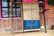The municipality is also known for the making is Persian-style handknotted rugs.[5] The making of these rugs was begun in 1968 with the aim of creating jobs in the region. It was initially sponsored by the Bank of Mexico; later the project was funded by the State of Mexico.[3] This project was later abandoned due to poor management, but families here continued to make the rugs on their own. In 1999, a new organization, Sociedad Cooperativa de Tapetes Anudados a Mano Temoaya (http://tapetestemoaya.com/) took over but remained independent of the government.[3] Although most rugs are made in a community called San Pedro Arriba (5 km from the seat), the cooperative's store, Centro Artesanal “Tapetes Mexicanos” is located in San Pedro Abajo.[2][3]