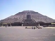 Teotihuacan (/teɪˌoʊtiːwəˈkɑːn/;[1] Spanish: Teotihuacán, Spanish pronunciation: [teotiwa'kan] ⓘ; ⓘ) is an ancient Mesoamerican city located in a sub-valley of the Valley of Mexico, which is located in the State of Mexico, 40 kilometers (25 mi) northeast of modern-day Mexico City.[2]