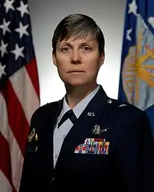 Teresa Anne Hudachek Djuric is the daughter of U.S. Army Major General John W. Hudachek and Anne (Hamilton) Hudachek.[2][3] She was commissioned in 1983 through Officer Training School. She has operated space systems at three space wings and Headquarters 14th Air Force. In 2004, she deployed to Southwest Asia as director of space forces for operations Enduring Freedom and Iraqi Freedom. She has commanded at the squadron, group and wing levels, and has served on staffs at the Air Force Personnel Center, United States Strategic Command and Headquarters United States Air Force. Prior to her final assignment, she was Commander, Jeanne M. Holm Center for Officer Accessions and Citizen Development, Maxwell Air Force Base, Alabama.