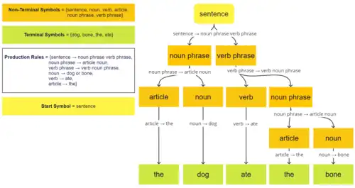 In the classic formalization of generative grammars first proposed by Noam Chomsky in the 1950s,[2][3] a grammar G consists of the following components: