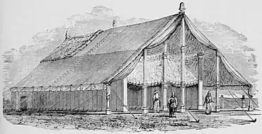 Terumah, Terumoh, Terimuh, or Trumah (תְּרוּמָה—Hebrew for "gift" or "offering," the twelfth word and first distinctive word in the parashah) is the nineteenth weekly Torah portion (פָּרָשָׁה, parashah) in the annual Jewish cycle of Torah reading and the seventh in the Book of Exodus. The parashah tells of God's instructions to make the Tabernacle and its furnishings. The parashah constitutes Exodus 25:1–27:19. It is made up of 4,692 Hebrew letters, 1,145 Hebrew words, 96 verses, and 155 lines in a Torah Scroll (Sefer Torah).[1] Jews in the Diaspora read it the nineteenth Sabbath after Simchat Torah, generally in February and rarely in early March.[2]