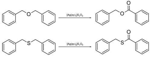The complex ion can easily oxidize alcohol, aldehyde and amine, and capable of decarboxylating α-hydroxycarboxylic acids and phenylacetic acids to give the corresponding carbonyl compounds.[3] Benzylic C-H bonds are oxidatively converted to carbonyl groups:[3]