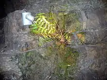 Within the Teufelshöhle, a unique plant community referred to as "lamp flora" has developed in the presence of artificial lighting. This flora primarily consists of algae, mosses, fungi, and fern plants that can establish themselves in the vicinity of the light sources. These plants typically exhibit stunted growth forms that would struggle to survive in complete darkness without the aid of artificial lighting. The plants are unevenly distributed and depend on the spores that enter the cave through water seepage from the Earth's surface via cracks and fissures. Additionally, cave visitors inadvertently contribute to the dispersal of these plants. In certain areas of the cave, due to drought, little or no lamp flora could develop. However, in the Great Dome, the largest chamber in the cave and the only one connected to the outside world, distinctive plant growth has occurred due to drafts. Notably, the dwarf fern in this area grows at a rate of one to five millimeters per year.[2]