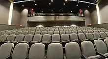 Geren Auditorium in Langford Building B. The newly renovated facility's space mainly consists of the auditorium and workshop; however, there are also offices located on the second floor