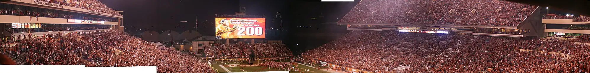 Mack Brown's tenure included stadium modernization and expansion, including the 2006 installation of the Godzillatron scoreboard which for a time was the largest in the world.[11][12] It is still the largest high-definition video screen in collegiate sports.[13][14][15][16][17][18][19][20]