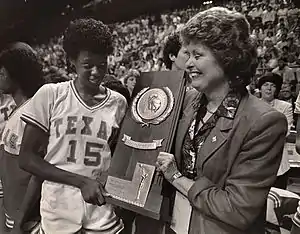 Conradt coached both basketball and volleyball, but would give up volleyball duties after two seasons.[16] The team would go on to become a dominant women's basketball team on the 1980s, ranked in the AP Top 10 for all but one year between 1979 and 1990.[14]