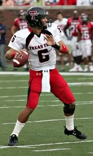 The Texas Tech Red Raiders football statistical leaders are individual statistical leaders of the Texas Tech Red Raiders football program in various categories,[1] including passing, rushing, receiving, total offense, defensive stats, and kicking. Within those areas, the lists identify single-game, single-season and career leaders. The Red Raiders represent Texas Tech University in the NCAA's Big 12 Conference.