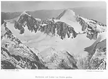 Hohe Weiße) (left) and Lodner (right) seen from north on a picture postcard of 1891.
