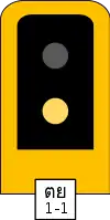 Distant signal use to indicate next main signal is red or not. This signal consists of 2 color light signals (yellow and green).