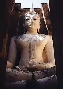 Thai temple art and architecture is the art and architecture of Buddhist temples in Thailand. Temples are known as wats, from the Pāḷi vāṭa, meaning "enclosure". A temple has an enclosing wall that divides it from the secular world. Temples served as a stabilizing center in these communities because their sacred teachings became a basis of authority and boundaries, their precincts became places of instruction, their regimes of common ownership of property formed them into economic centers, and their functions allowed them to serve at the heart of these communities in a variety of ways.[1]