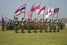 Thailand has been important to the US war on terrorism, "providing access to military facilities, sharing information on the movements of terrorist organizations and suspected terrorists, offering military engineering and medical personnel to support reconstruction efforts in Afghanistan".[26] The most visible element of this cooperation was a joint operation between the CIA and Thai police which captured Riduan Isamuddin (better known by his nom de guerre, Hambali) in 2003.[23]