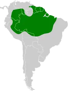 The Amazonian antshrike is found in the entire Amazon Basin and the Guianas, minus a small region in southwestern Venezuela and Roraima state Brazil in the northwest section of the Basin.