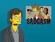When Homer's band is playing "Politically Incorrect", a character named "Marvin Cobain" calls his cousin Kurt Cobain on the phone and makes him listen to the song, stating that it might be the new sound he has been looking for. This is a reference to a scene from the movie Back to the Future where Marvin Berry calls his cousin Chuck Berry and makes him listen to Marty McFly playing a cover of "Johnny B. Goode". The breaking news broadcast on TV by Kurt Loder (voiced by Loder himself) self-references Loder's own breaking news broadcast on MTV News that Kurt Cobain was dead. The episode title is a reference to another popular, but live-action, Fox sitcom That '70s Show. The same title would coincidentally later be used for that show's 2023 sequel series. The episode parodies Kurt Cobain's rise to fame with Nirvana. Sadgasm is a parody of Nirvana, and the band's breakup references Cobain's breakup from Nirvana. When Homer blocks himself from his fans in his mansion, this references Cobain's heroin addiction and his depression before his suicide. Most of Sadgasm's songs are based on songs from Nirvana. In one scene, it is implied that Homer is watching Seinfeld, as the theme can be heard. He also says to Marge, "No soup for you!", and that he is the "master of his domain," which are lines from the episodes "The Soup Nazi" and "The Contest", respectively, and ponders, "Oh Elaine, will you ever find a man who's sponge-worthy?", an allusion to the episode "The Sponge". When Homer goes to Moe's and asks for a beer, Moe tells him he turned his establishment into a cigar bar, a reference to the 1990s' cigar boom.