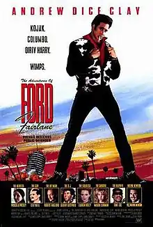 The Adventures of Ford Fairlane is a 1990 American action comedy film noir mystery film directed by Renny Harlin[4] and written by David Arnott, James Cappe, and Daniel Waters based on a story by Arnott and Cappe. The film stars comedian Andrew Dice Clay as the title character, Ford Fairlane, a "Rock n' Roll Detective",[5] whose beat is the music industry in Los Angeles. True to his name, Ford drives a 1957 Ford Fairlane 500 Skyliner in the film.