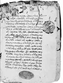 Within a hundred years of Isaac's death, his The Ascetical Homilies were already famous, and were referred to and quoted from in Syriac literature. They were translated from a West Syriac manuscript into Greek at Mar Saba monastery by Abbas Patrick and Abramius, then from Greek into Arabic, Georgian (by Euthymius the Athonite) and Latin (and subsequently into French, Italian, Catalan, Castilian, and Portuguese), and finally into Amharic and Slavonic.[31] The oldest known manuscript of the Latin translation is in the Laurentian Library in Florence and dates from the 13th-century. In the last two centuries, the The Ascetical Homilies were also translated into German, English, Japanese, Malayalam, and Persian.[32] Some notable full translations (as opposed to fragmentary manuscripts) are: