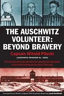 The Auschwitz Volunteer: Beyond Bravery is a nonfiction 2012 book consisting of a report (also described as a diary) by Polish resistance fighter Witold Pilecki, an introduction written by historian Norman Davies and a foreword by Chief Rabbi of Poland Michael Schudrich. The diary has been translated by Jarek Garliński and was published in English by Aquila Polonica. It covers a period of about four years during which Pilecki was on a mission to infiltrate the Auschwitz concentration camp.[1] Pilecki wrote his report in Polish in the summer of 1945 for his Polish Army superiors; this book was the first time his report was published in English. His mission had two principal goals: smuggle out intelligence about the camp, and build a resistance organization among the prisoners.