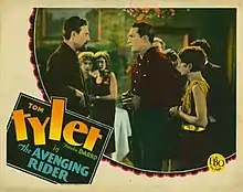 The Avenging Rider is a 1928 American silent Western film directed by Wallace Fox and starring Tom Tyler, Florence Allen and Frankie Darro.[1]