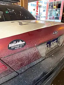 A taxi used in the filming with a Gotham City license plate and decal while filming in Chicago.