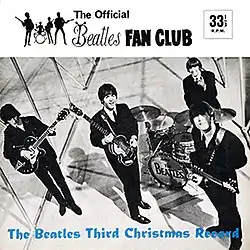 The first Christmas recording[3] from the Beatles featured several renditions of the traditional carol "Good King Wenceslas" and individual messages from the four, ending with a closing chorus of "Rudolph the Red-Nosed Ringo".[4][5] This offering, as well as 1964's, was scripted by Beatles' press officer Tony Barrow, who had instigated the Christmas message programme.[6][7]