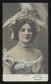 The show starred Edna May, whose performance as Violet made her a star in New York and London. Postcards of her in costume became ubiquitous; more photographs of her were sold in London than of any other actress in 1898.[3] In London, the piece opened on 12 April 1898, produced by J. C. Williamson and George Musgrove.[3] The composer conducted at the opening night.[4] Painter Ernest Albert designed the production's sets.[5] The work had stiff competition in London in 1898, as other successful openings included A Greek Slave and A Runaway Girl.[1]