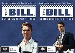 The eighth series of The Bill, a British television drama, consisted of 105 episodes, broadcast between 2 January – 31 December 1992. The series was released on DVD for the first time on 6 June 2012, in Australia. It features the above artwork, which features images of PC Steve Loxton and DC Mike Dashwood.