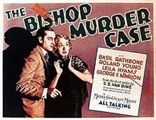The Bishop Murder Case is a 1929 American pre-Code mystery film directed by David Burton (credited for stage direction) and Nick Grinde (credited for screen direction) and starring Basil Rathbone, Leila Hyams and Roland Young. Ten years before assuming his role as Sherlock Holmes in a series of 14 films, Rathbone essayed the character of S.S. Van Dine's detective Philo Vance in this single outing.[1]