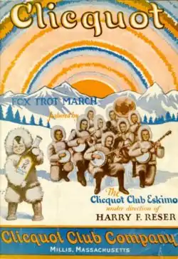 The Clicquot Club Eskimos was a popular musical variety radio show, first heard in 1923, featuring a banjo orchestra directed by Harry Reser. A popular ginger ale, Clicquot Club, was Canada Dry's main rival. Clicquot (pronounced "klee-ko") was the name of the Eskimo boy mascot depicted in advertisements and on the product.[1]