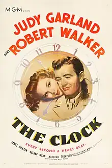 The Clock (UK title Under the Clock) is a 1945 American romantic drama film starring Judy Garland and Robert Walker and directed by Garland's future husband, Vincente Minnelli. This was Garland's first dramatic role, as well as her first starring vehicle in which she did not sing.