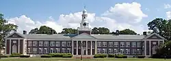 The institution is organized into seven schools, all of which offer bachelor's degree programs and several of which offer master's degree programs.[10] Emphasis is placed on liberal arts education via the college's general education requirements.[11] Much of TCNJ is built in Georgian colonial revival architecture style on a 289-acre (117 ha) tree-lined campus.