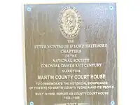 A plaque from the organization at the Old Martin County Courthouse in Stuart, Florida.