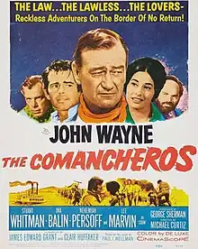 The Comancheros is a 1961 American CinemaScope Western film directed by Michael Curtiz, based on a 1952 novel of the same name by Paul Wellman, and starring John Wayne and Stuart Whitman. The supporting cast includes Ina Balin, Lee Marvin, Nehemiah Persoff, Bruce Cabot, Jack Elam, Joan O'Brien, Patrick Wayne, and Edgar Buchanan. Also featured are Western-film veterans Bob Steele, Guinn "Big Boy" Williams, and Harry Carey, Jr. in uncredited supporting roles.