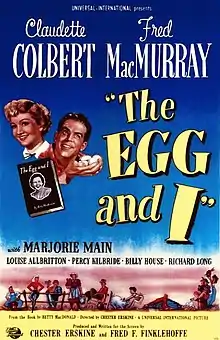 The Egg and I is a 1947 American romantic comedy film directed by Chester Erskine, who co-wrote the screenplay with Fred F. Finklehoffe, based on the book of the same name by Betty MacDonald and starring Claudette Colbert and Fred MacMurray, with Marjorie Main and Percy Kilbride as Ma and Pa Kettle.