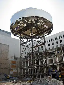 In the late 1980s, the flagship Market Street store was connected to the new San Francisco Shopping Centre (known as Westfield San Francisco Centre until July of 2023[12]), a nine-story indoor mall anchored by a flagship Nordstrom location. Nordstrom permanently closed on August 27, 2023.[13] In July 2023, Westfield was removed from the signage and it's now known as San Francisco Centre.[14] The Emporium location closed permanently in February 1996, and after some controversy regarding the historic preservation of the building's facade and other elements, was redeveloped by Forest City Enterprises and The Westfield Group as an expansion of the existing San Francisco Centre with a West Coast flagship location of New York-based Bloomingdale's, which opened on September 28, 2006.[15] The previously much-altered interior has been gutted and rebuilt to meet seismic standards and conform to modern retail configurations. The Emporium's historic domed glass roof was restored and is the centerpiece of the new facility. The developers were fined $2.5 million for demolishing part of the tower and failing to preserve parts of the structure.[16]