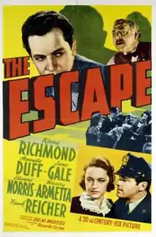 The Escape is a 1939 American crime film directed by Ricardo Cortez and written by Robert Ellis and Helen Logan. The film stars Kane Richmond, Amanda Duff, June Gale, Edward Norris, Henry Armetta and Frank Reicher. The film was released on October 6, 1939, by 20th Century Fox.[1][2][3]