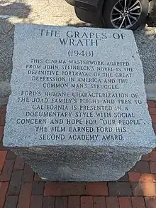 Stone inscription for The Grapes of Wrath at Ford's statue in Portland, Maine.