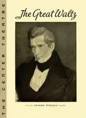 The Great Waltz debuted on Broadway at the Center Theatre on September 22, 1934 and ran for 289 performances. The production was directed by Hassard Short and presented by Max Gordon, with choreography by Albertina Rasch, settings by Albert Johnson and costumes by Doris Zinkeisen together with Marion Claire, Marie Burke and Guy Robertson.[1] The musical was made into a motion picture by MGM in 1938 with a screenplay and new lyrics by Oscar Hammerstein II.