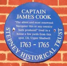 • Captain James Cook (1728–1779), explorer and cartographer, who lived in the area from 1763 to 1765 and baptised some of his children at St. Paul's Church, Shadwell. A blue plaque commemorates him at No. 326, The Highway. (A slate plaque also marks another of his homes at No. 88, Mile End Road.)
