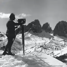 The Holy Mountain (German: Der heilige Berg) is a 1926 German mountain film directed by Arnold Fanck and starring Leni Riefenstahl, Luis Trenker and Frida Richard. It was the future filmmaker Riefenstahl's first screen appearance as an actress. Written by Arnold Fanck and Hans Schneeberger, the film is about a dancer who meets and falls in love with an engineer at his cottage in the mountains. After she gives her scarf to one of his friends, the infatuated friend mistakenly believes that she loves him. When the engineer sees her innocently comforting his friend, he mistakenly believes she is betraying him.