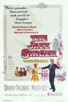 The Jazz Singer is a 1952 remake of the famous 1927 talking picture The Jazz Singer. It stars Danny Thomas, Peggy Lee, and Eduard Franz, and was nominated for an Oscar for best musical score. The film follows about the same storyline as the version starring Al Jolson. It was also distributed by Warner Bros. Pictures.