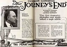 The Journey's End is a 1921 American silent drama film directed by Hugo Ballin and starring Mabel Ballin, George Bancroft and Wyndham Standing.[1]