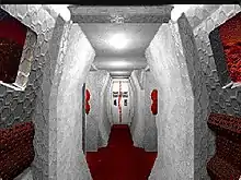 The game features a first-person perspective. The protagonist sees a display, a rectangle shaped visor (acting as a monocle for Agent 5). This user interface helps to reduce the movie size and maintain relatively high frame rates. Controls work as four interface buttons located below the screen. They move Agent 5 forward and backward, and rotate Agent 5 left and right.