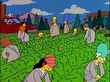 Various residents of Springfield being forced by the Movementarians cult into growing and harvesting lima beans.